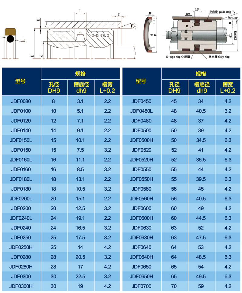格萊圈由一個(gè)橡膠O型圈及聚四氟乙烯圈組合而成。〇型圈施力,格萊圈為雙作用活塞密封。摩擦力低,無(wú)爬行,啟動(dòng)力小,耐高壓??煞譃榭子酶駚?lái)圈和軸用格來(lái)圈。